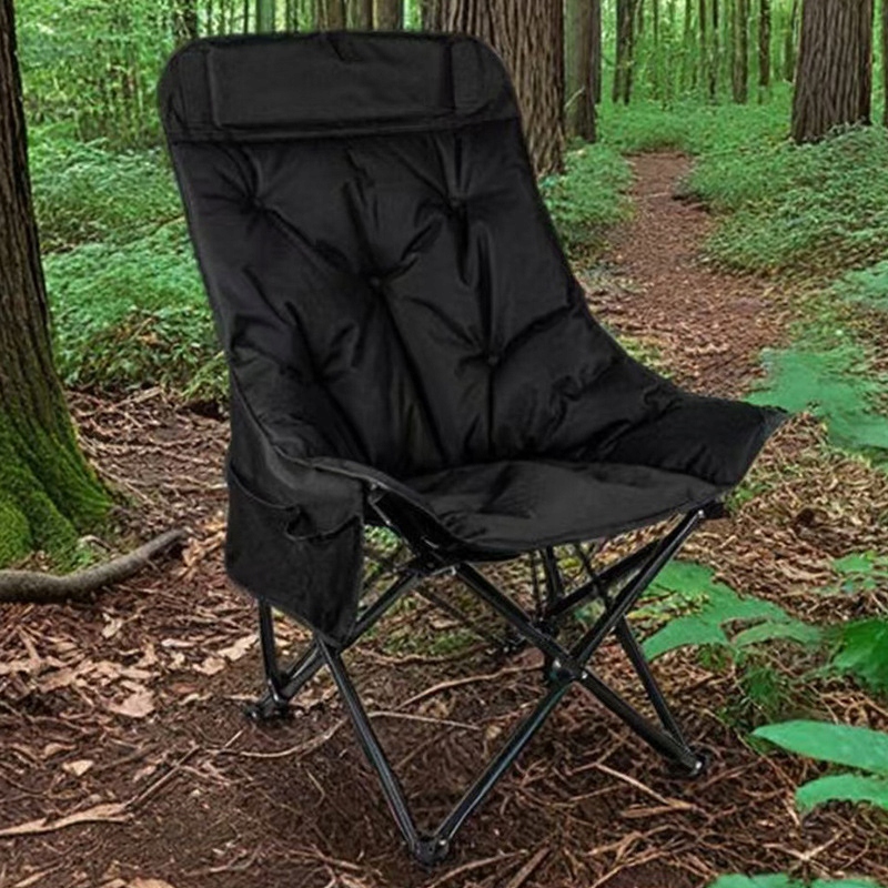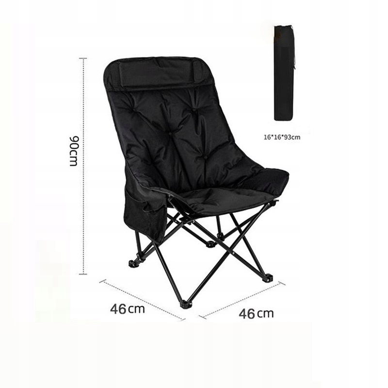 Relaks Gwarantowany! Wygodne Czarne Krzesło Turystyczne z Wysokim Oparciem! 🏕️