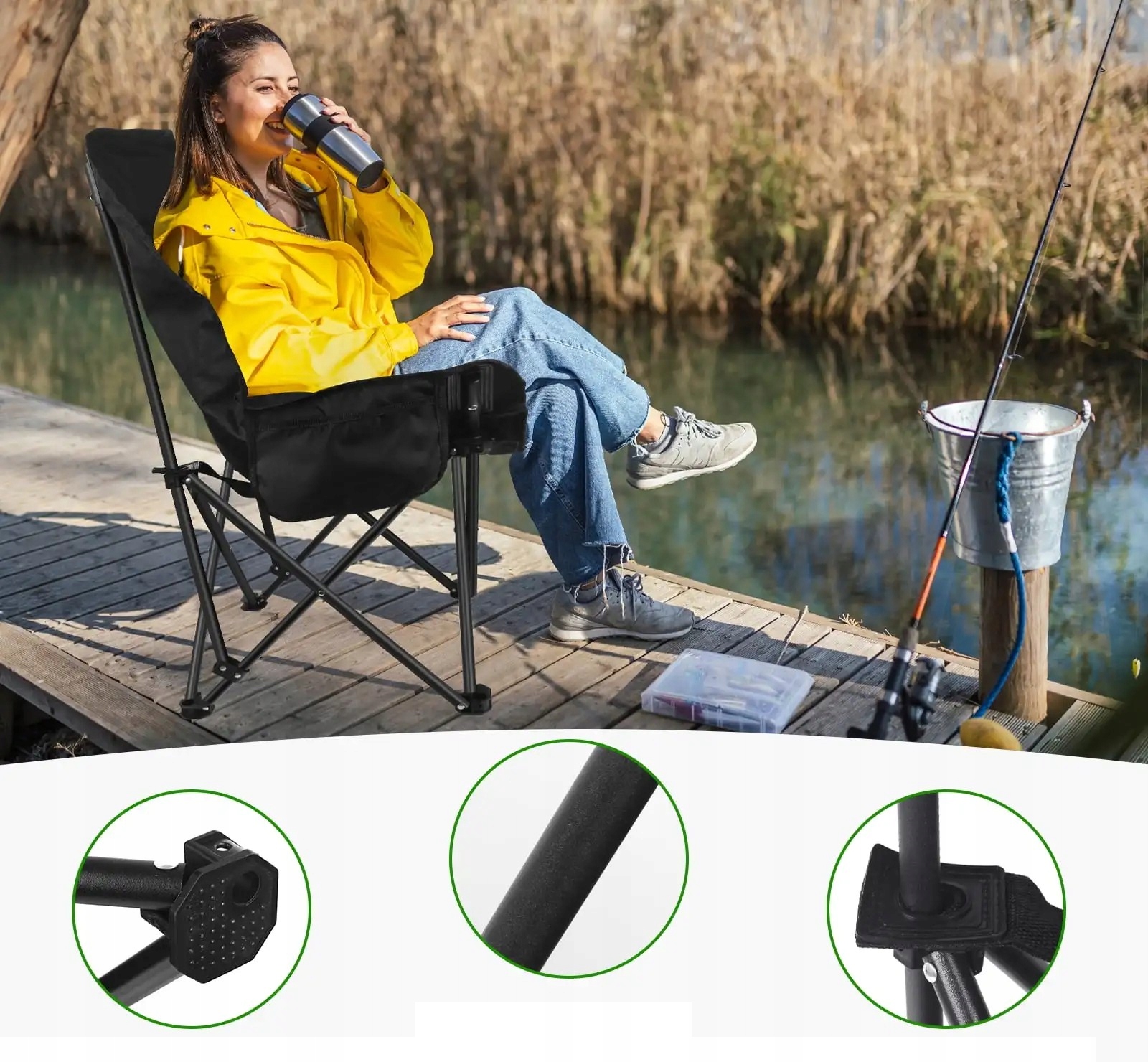 Zadbaj o swój komfort podczas wypoczynku na świeżym powietrzu! To solidne i wygodne krzesło turystyczne z wysokim oparciem to idealne rozwiązanie na biwak, ryby, działkę czy festiwale. Dzięki solidnej konstrukcji i przemyślanej budowie zapewni Ci wygodę niezależnie od miejsca.
