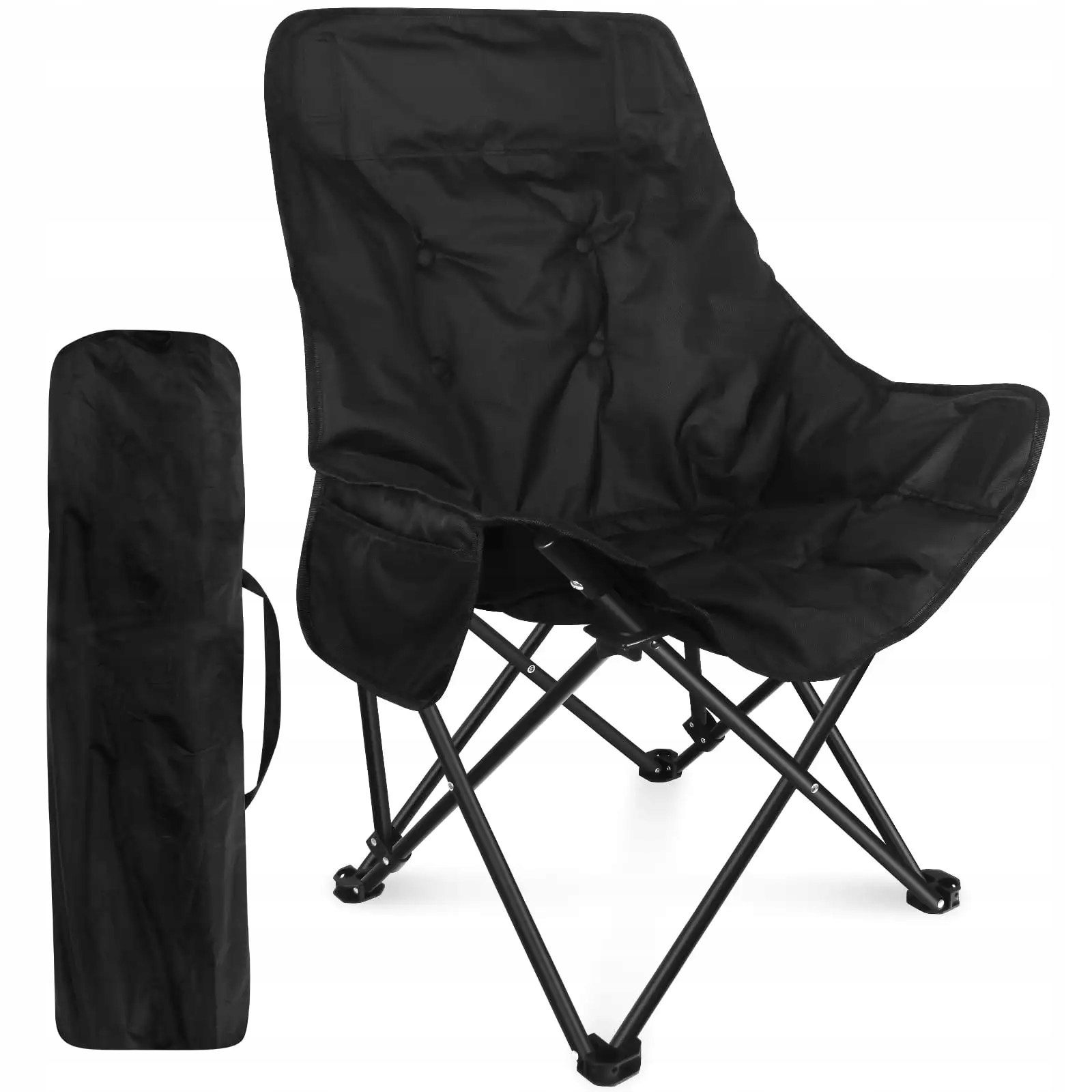 Wygodne Krzesło Turystyczne Składane z Wysokim Oparciem + Pokrowiec | Nośność do 136 kg