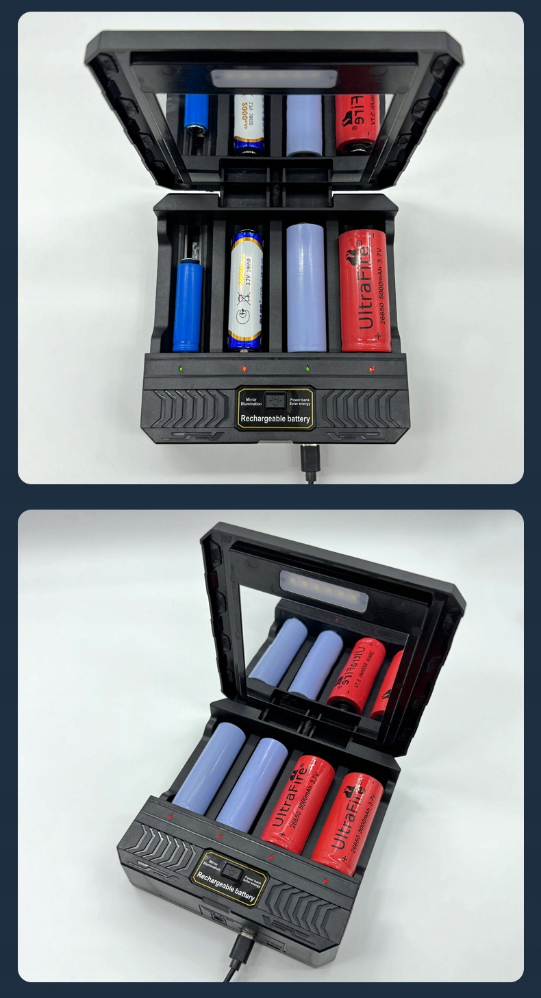 Ładowarka solarna na 4 akumulatory Li-Ion z lusterkiem i powerbankiem