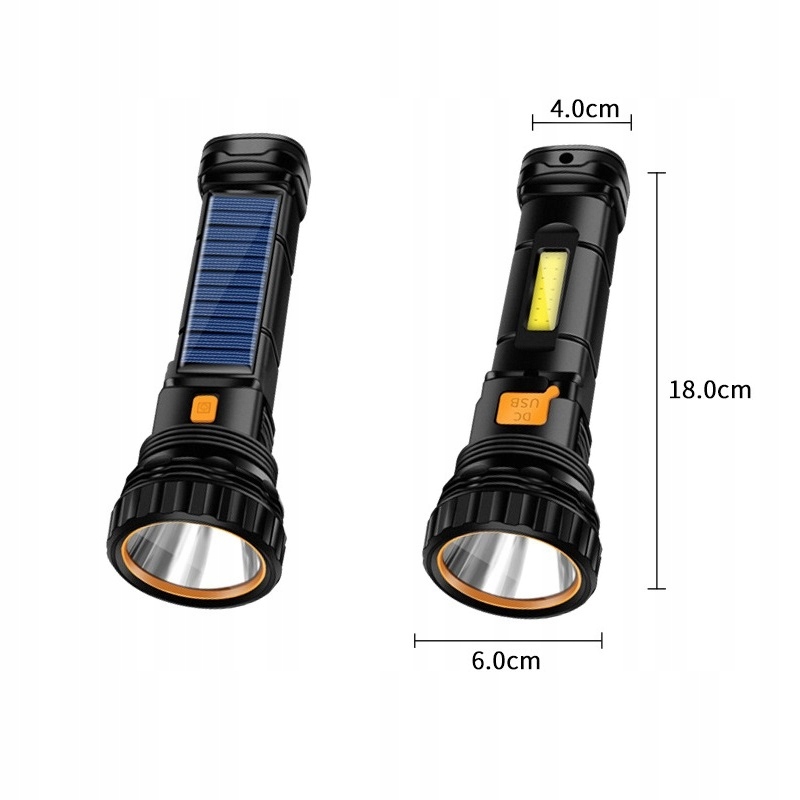 Praktyczna latarka z funkcją powerbanku i ładowaniem solarnym – idealna na biwak, do warsztatu, samochodu czy w razie awarii prądu! Dzięki panelowi słonecznemu możesz ją ładować w terenie, a zintegrowany port USB pozwala doładować telefon w sytuacjach awaryjnych.