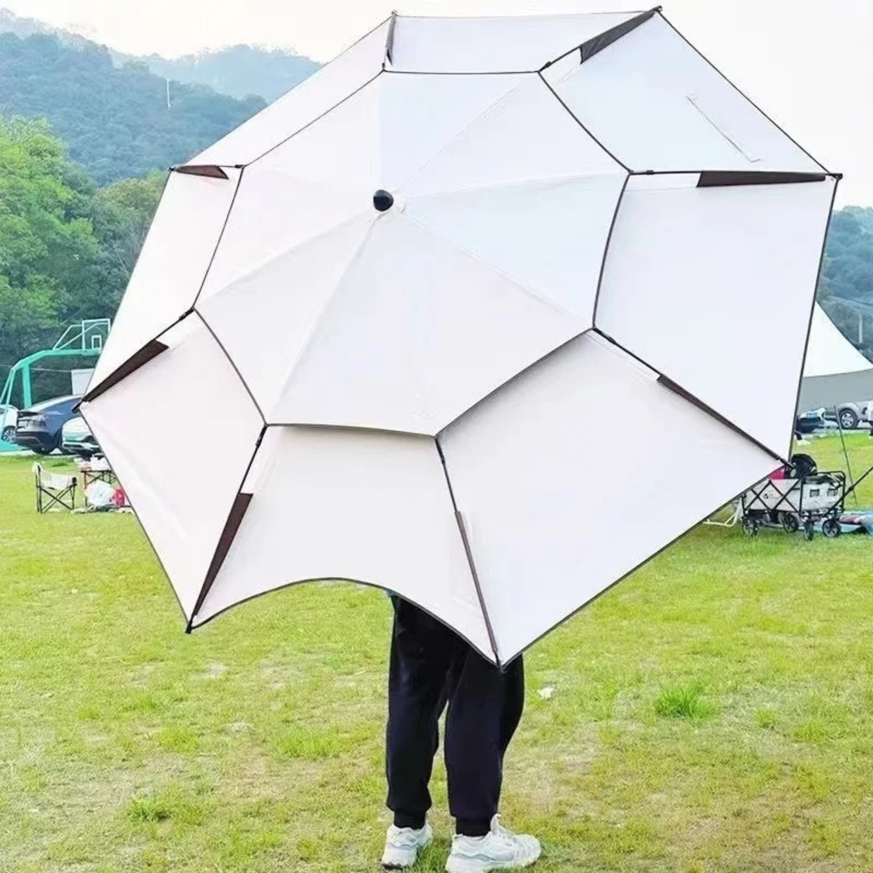 - Duża Powierzchnia Krycia XXL: Rozpiętość czaszy wynosząca 2,4 metra zapewnia dużą ilość cienia dla kilku osób i sprzętu.