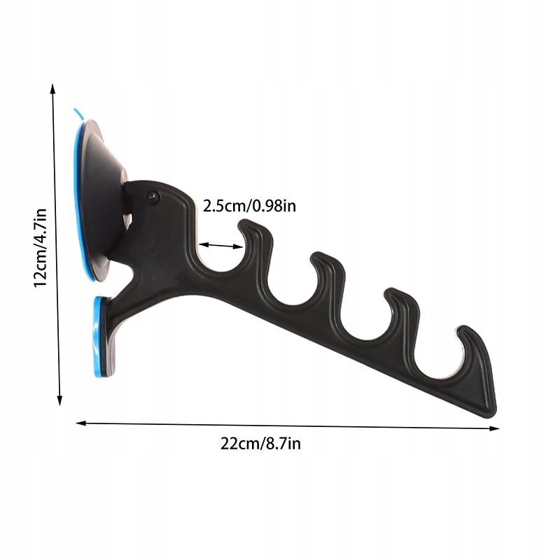 Praktyczny uchwyt do przechowywania i organizacji wędek na łodzi wiosłowej, żaglówce lub w domu. Wyposażony w mocną przyssawkę, dzięki której łatwo przymocujesz go do gładkich powierzchni, takich jak szyby, płytki czy plastikowe ścianki.