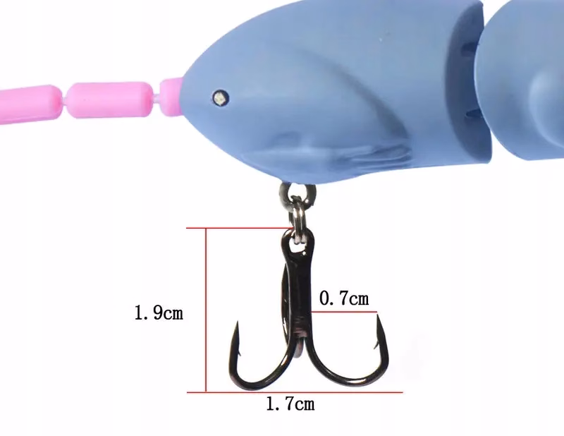 - Podzielony Odcinek Ogona: Innowacyjny design z podzielonym ogonem zapewnia realistyczne ruchy pływania i przyciąga ryby z daleka.