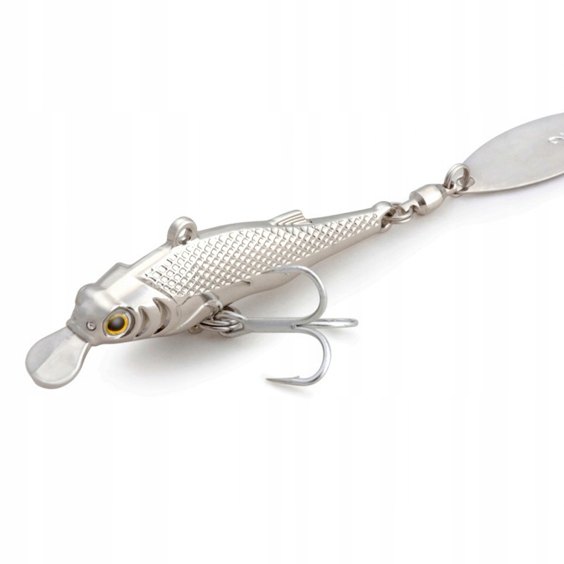 Realistyczna metalowa przynęta pływająca w toni wody. Z pewnością z łatwością przyciągnie nie jednego dużego osobnika żerującego przy w toni wody oraz na większych głębokościach.
